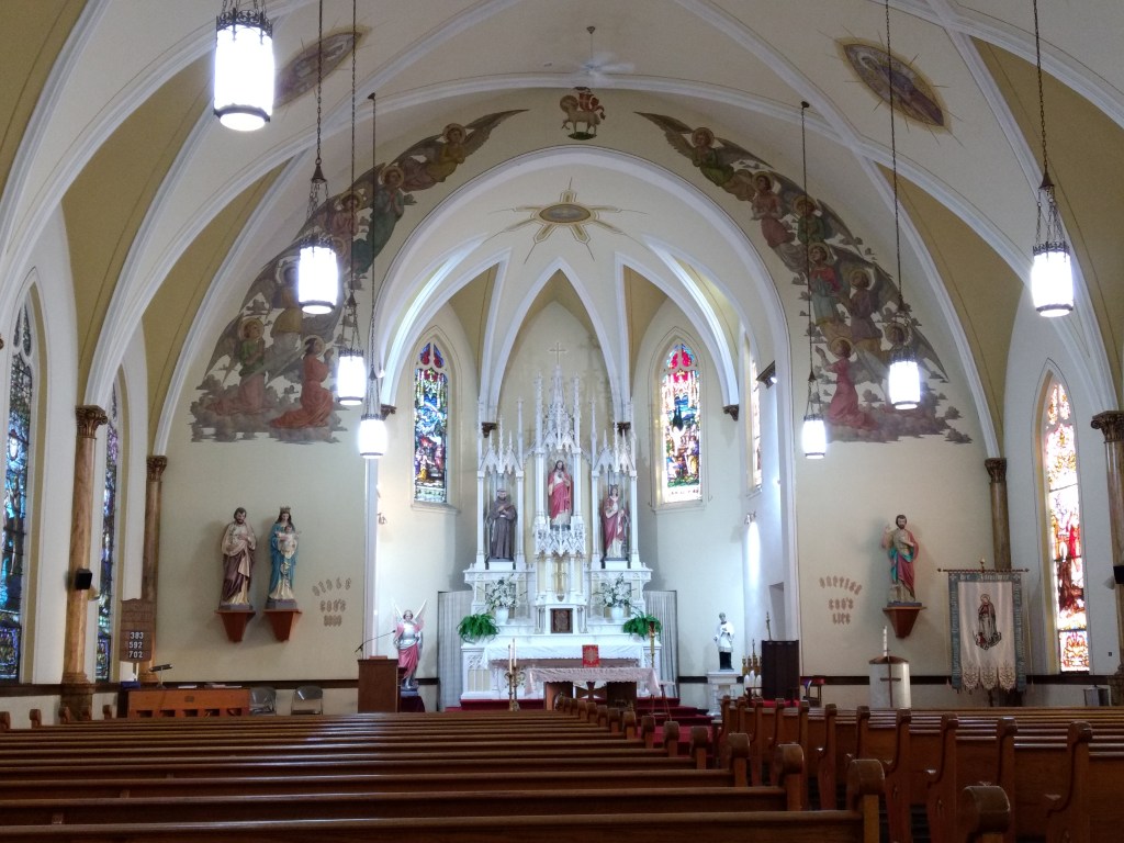 The ceiling in Stacyville, Visitation Church after serious restoration. Don’t know why that’s what I concentrated on?!?