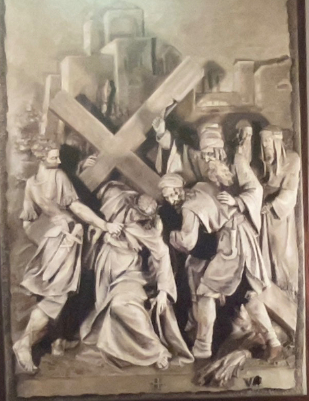 Here you can see Saint John with both hands on the cross. The soldier on the left has a sword that reaches right out of the Station towards the viewer.