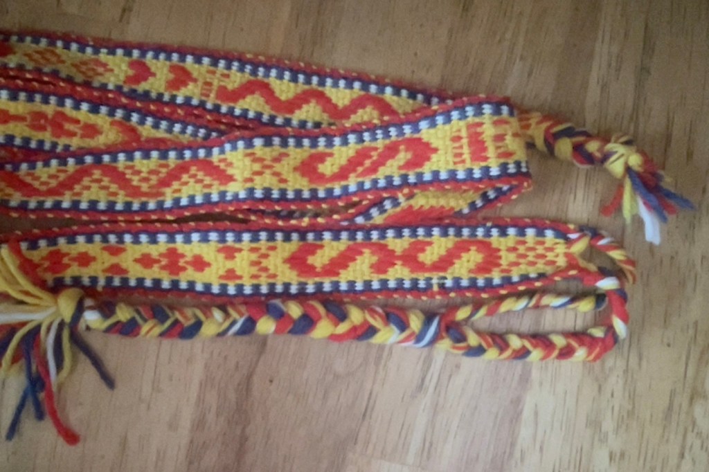 I’m doing some ‘mönsterplock’. {Just the name, in Swedish or Sami**, (it’s got to be Swedish…?) makes me feel better. It seems to mean pattern.} I’m using ‘mönstertrådar’ to do this ‘mönsterplock’ along with a mini-suohpan, aka ‘warp lasso,’ about which more later. A Swedish company, Stoorstålka, which can sound sinister if you try hard, produces several kits for people to learn the art of weaving Sami bands. It is based in Jåhkåmåhkke (Jokkmokk) Sweden.