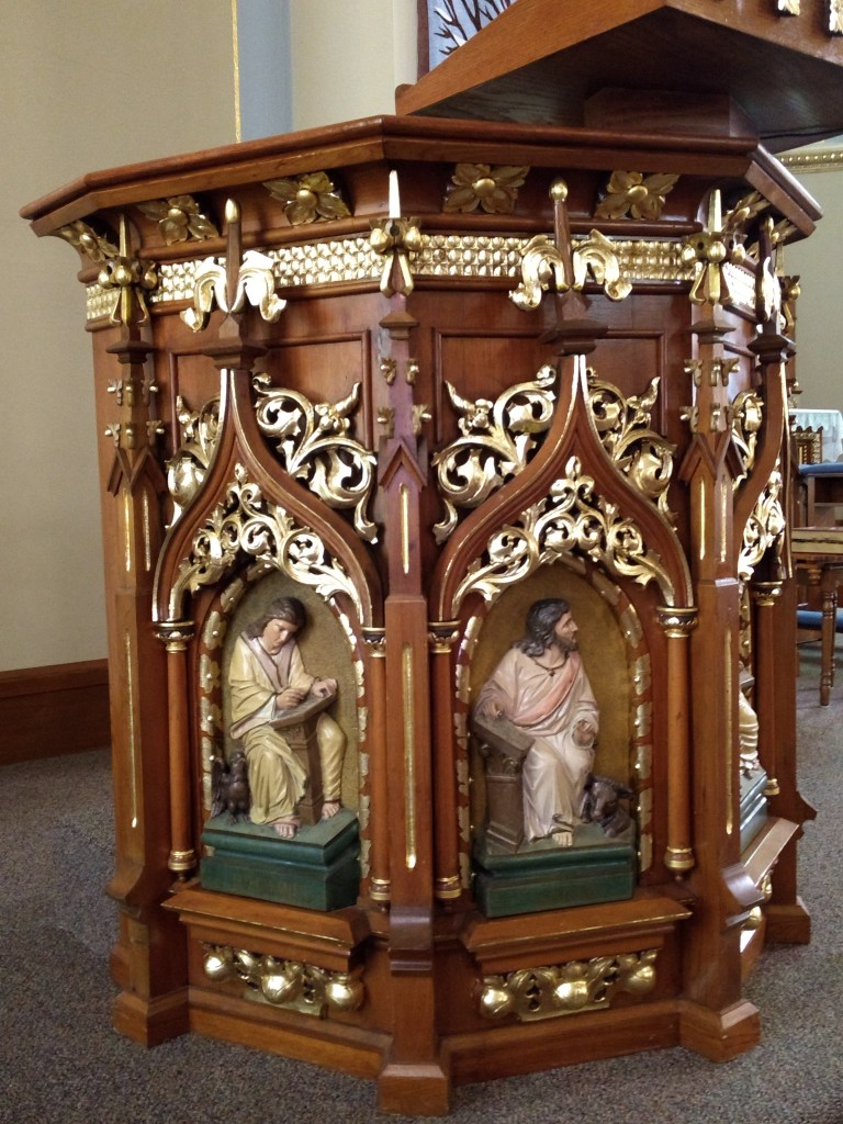 Top row, left and right, pulpit in a church in New Trier, Minnesota. Middle picture, possibly from the chapel at the Dominicans of Mary Mother of the Eucharist, mother house in Ann Arbor