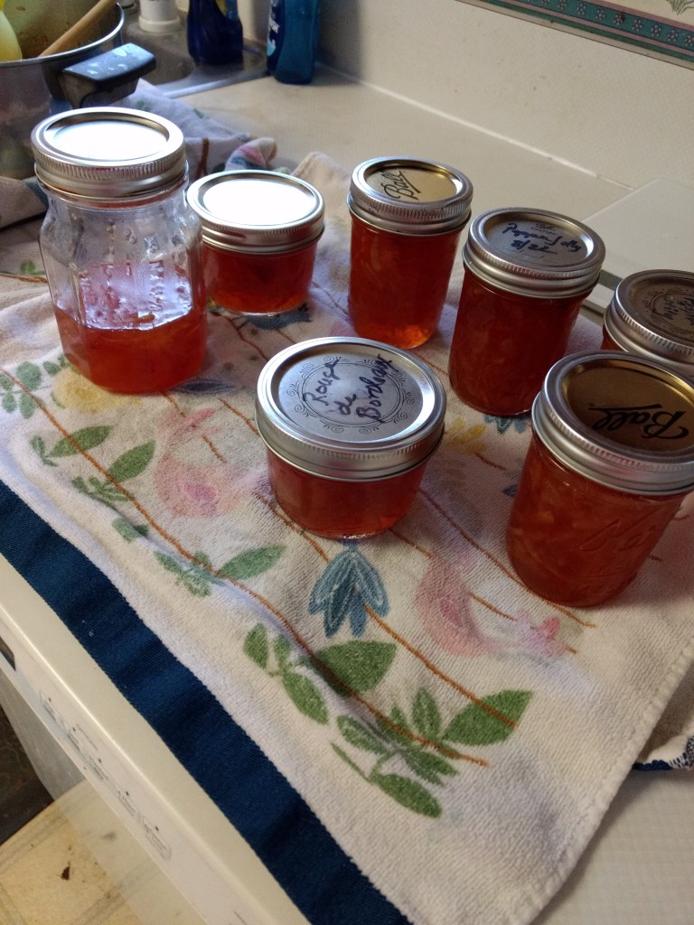 My father used to have Chivers’ Old English Marmalade at breakfast, now and then, and we weren’t supposed to touch it. It was his treat. It was also the kind of thing that I was perfectly content to let him have, all to himself, after I had a taste of it. Not My Thing. Too bitter. And I don’t actually know whether my friend makes bitter marmalade, or sweet, or both. The jam she sent when I was unhappy was elderberry. But having looked deeply into the matter it became clear that you can make any kind of marmalade you want. Consequently, my jam is a lot sweeter than Chivers’ though it still has some bitter tang.