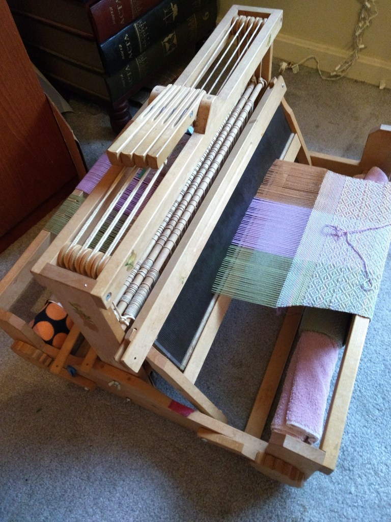 Forty-five years ago I bought a ‘portable’ table loom. I was living in Seattle and the local Rasmussen looms were a Thing in certain circles. It was an outrageous purchase even at the time but I didn’t care. I was entranced by the idea of making cloth. I also had the idea at the time that when some horrifying event destroyed civilization it would be a good thing to know how to keep clothed and shod* and stuff. I bought a book about gardening but it’s pretty clear that I cannot garden. If I have to rely on my own efforts to grow things — that’ll be a problem. However, forty years ago, I figured that if I had other skills, I might be able to barter them.