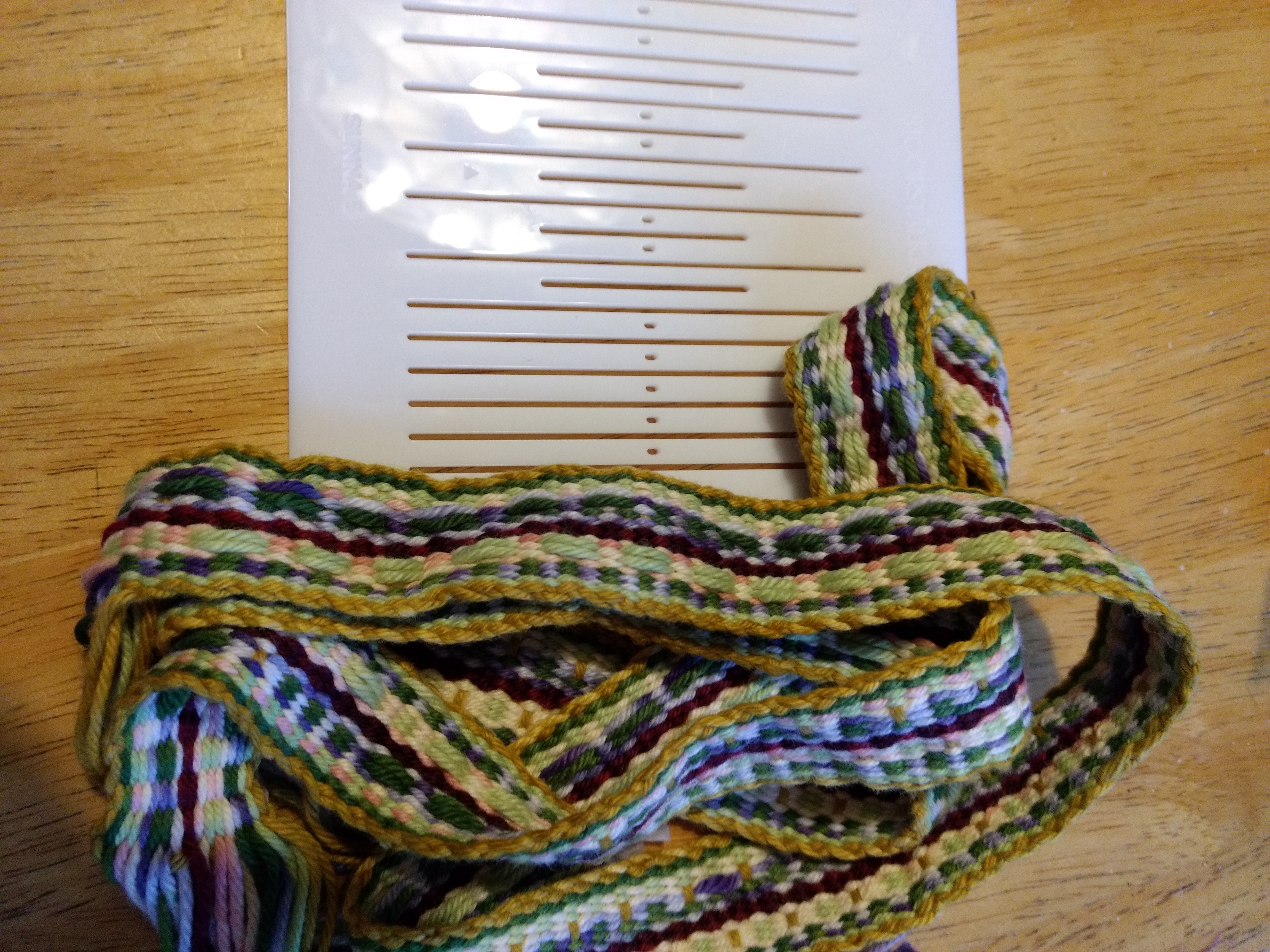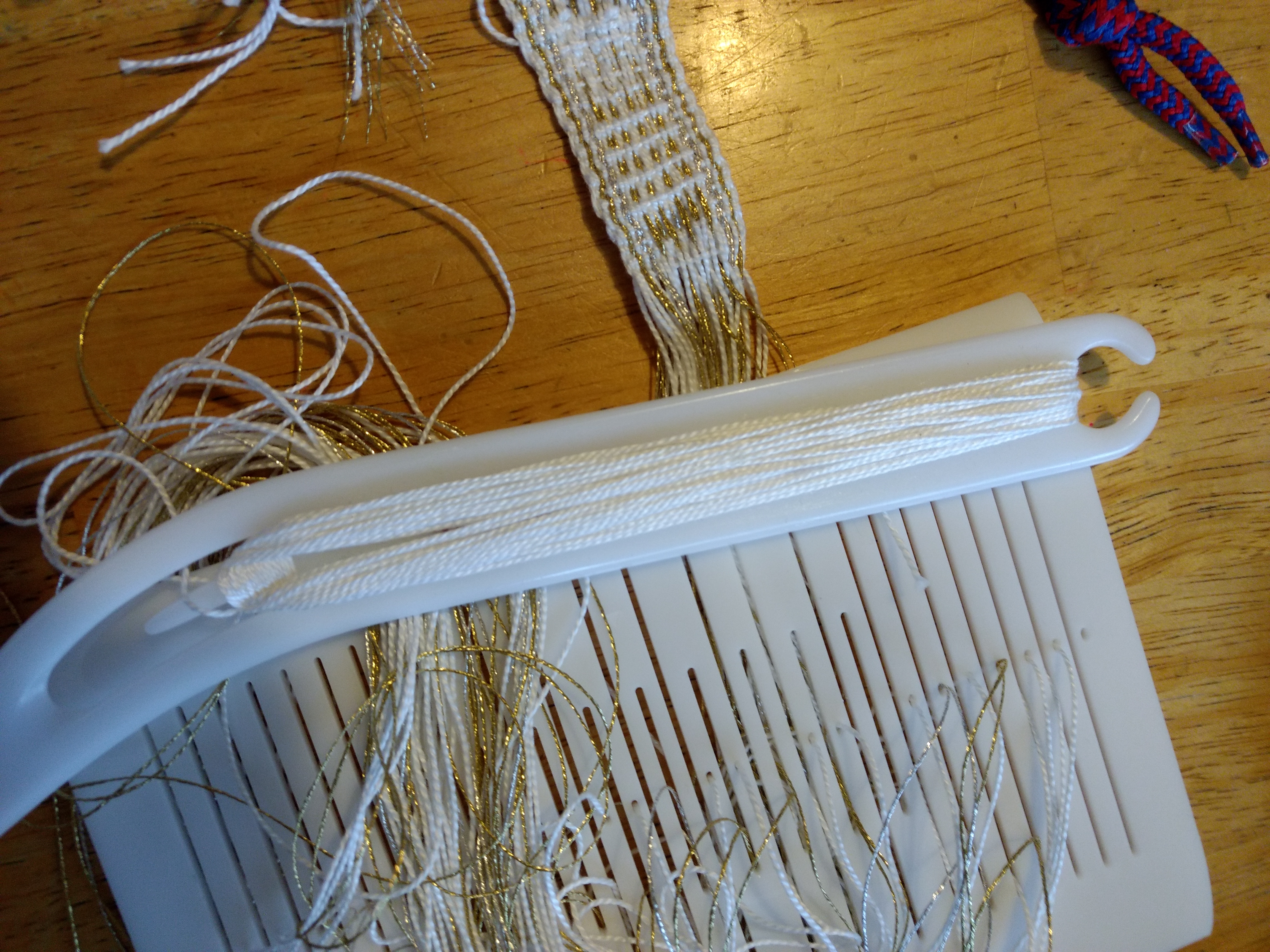 Meanwhile I bought a new and larger version of the old potholder looms that young children use. My daughter says that they are finger laceration traps and she’s kind of right. But I’ve had a blast.